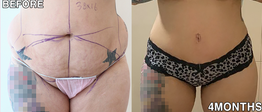 When upper abdomen is relatively firm but skin sagging shows on lower abdomen, it can be tightened with Mini Abdominoplasty which is simpler compared to Full abdominoplasty.